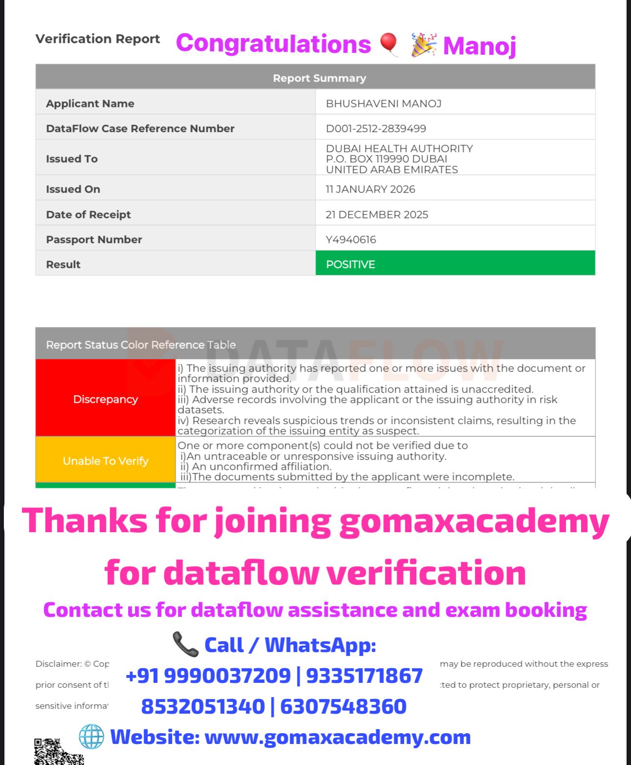 "Your DataFlow Verification has been successfully completed β π Need help with DataFlow assistance or exam booking? π Contact us today!"