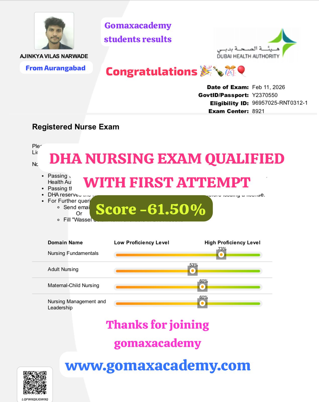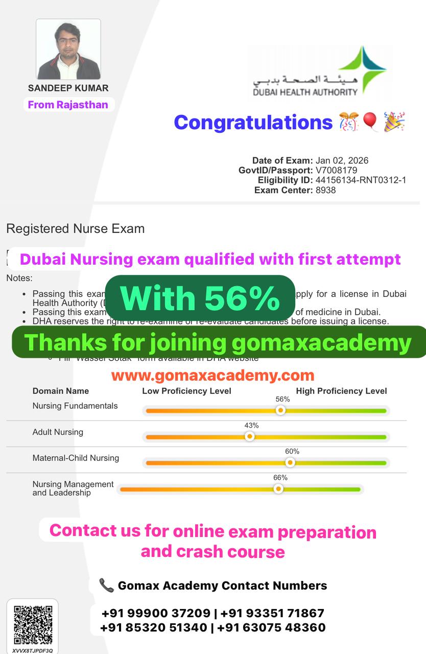 "Shancy Pratik cleared the DHA Reg Nurse exam in his first attempt with Gomax Academyβs expert guidance. DHA exam book Dha exam eligibility Dha exam questions DHA exam fees DHA Exam official website DHA exam syllabus DHA exam Full form DHA exam registration"