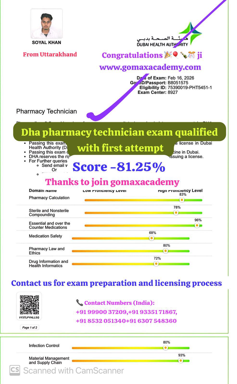 "π SUCCESS STORY β DHA PHARMACY TECHNICIANπ SOYAL KHAN has successfully qualified the DHA Pharmacy Technician Exam in the first attempt with an excellent 81.25% score β "